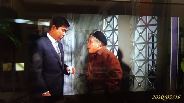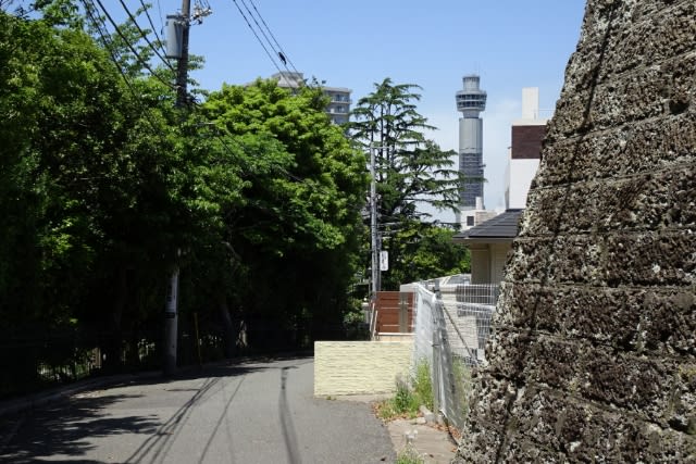 この場所はどこだろう??マリンタワーが見下ろせる高台で右に石垣。裕次郎の背後に門柱。