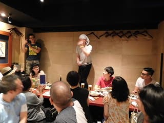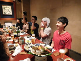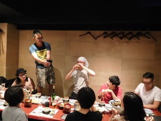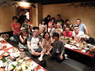 代々木公園の出番が終わってからなので、日曜の夜9時スタートという、勤め人にはかなり厳しい日程でしたが、15人くらいの人が集まりました。台湾側からは、小應とバンドメンバー、それから今回一緒に来日した写真担当のスタッフも入れて5人が参加し、計20人のにぎやかな宴会になりました。
