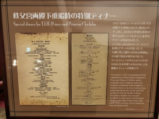 「氷川丸は日本郵船が1930 年にシアトル航路用に建造した貨客船です。 当時最新鋭の船として竣工しました。戦争中は海軍特設病院船となり、終戦までに3回も触雷しましたが沈没を免れ、戦後は貨客船に戻り1953年にシアトル航路に復帰。船齢30年に達し第一線を退くまでに、太平洋横断254回、船客数は2万5千余名と、活躍しました。