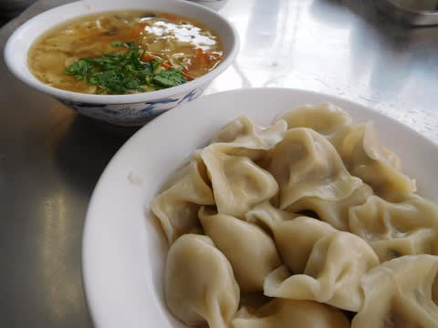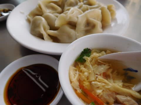 この店の帰りにちょっと道を間違えたおかげで、もう一つの有名店「南塘水餃店」にも行くことができました。(ちょうど通りかかった)連れが「ここも有名な店ですよ」というので、猫耳ビーフン食べただけでまだお腹いっぱいじゃなかったので、ここで水餃子と酸辣湯をいただきます。