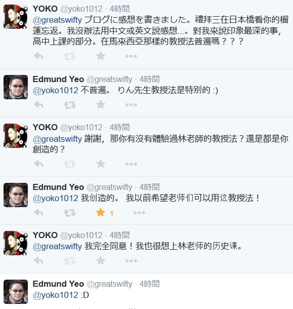 私:よくわかります。私も林先生の歴史の授業受けてみたいです。