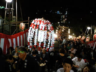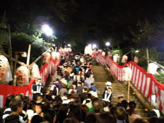 万灯を抱えて石段を登るのはとても大変そうです。