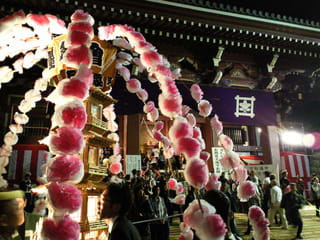 日蓮上人がなくなったとき、秋なのに桜が咲いたそうで、その桜を模した「万灯」の練り供養がハイライトです。