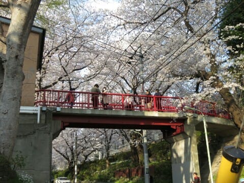 東急多摩川線沼部駅から東光院前を通り北東へ向かうと、田園調布本町19番あたりから石垣にはさまれた切通しの坂道になります。これが桜坂で、坂名は坂道の両側に大正時代に植えられた桜にちなむものです。