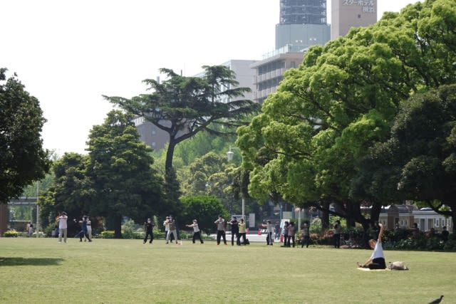 望遠で撮っているので近いように見えますが、皆さんちゃんと距離をとって、全員マスクをしてやっていました。健康的でいいですね。(そもそも太極拳は近づいたらできませんもんね)横浜に引越したら、こういう公園で太極拳やるグループにはいりたいな〜なんて思っていたのを思い出しました。