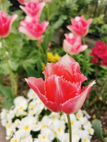 花壇の花が咲きみだれています。