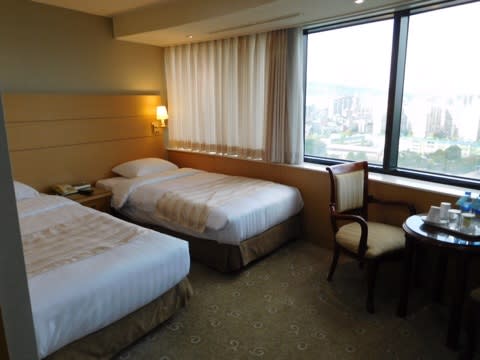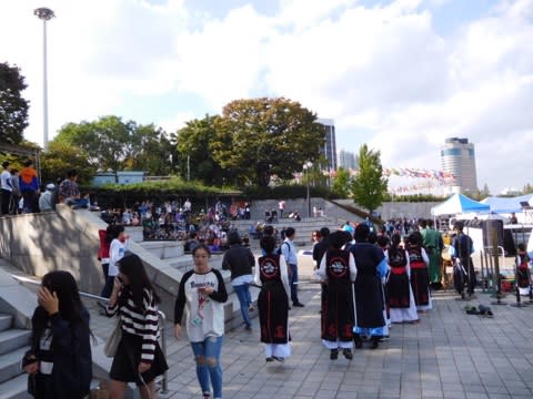 15万ウォン弱の安くないお値段だけど、古くて公共の宿みたいな印象。部屋は15階。荷物をおいたらすぐに会場に向かわないと。予定よりもかなり遅れてしまった。