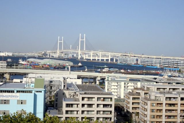 港の見える丘公園へ行って海を見ていたら、ベイブリッジの向こうに見覚えのある船が。
