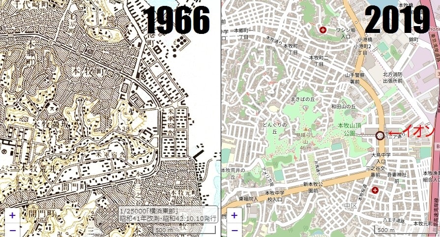 本牧山頂公園も米軍宿舎が立ち並んでいたことがわかります。