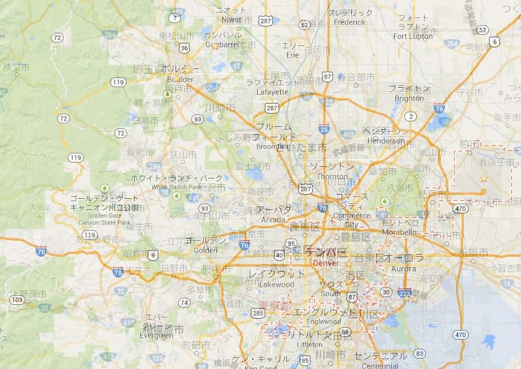 デンバーからボルダーくらいまでは山がなく平地なので、この地図の範囲だけ見ると関東平野の感じにそっくりかもしれません。