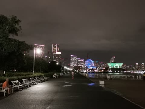 普段ならそれなりに夜景を見に来る人たちがいますが、ベンチが雨に濡れているせいか、ジョギングする人のほかはあまり人もいませんでした。