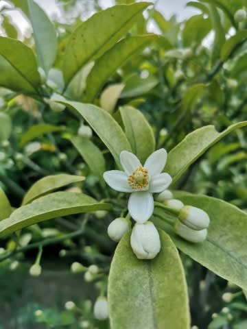 港の見える丘公園~沈床花壇のミカンの花。