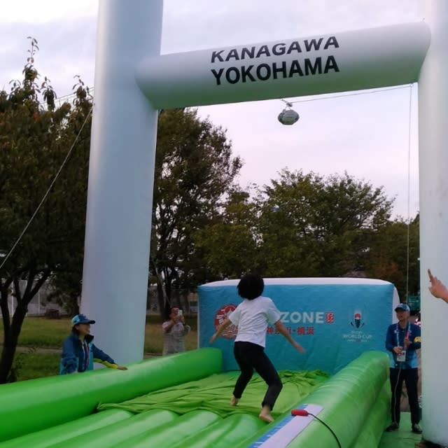 ラグビー体験コーナーを見たり、ビール飲んだりして、日本開催のワールドカップの雰囲気を味わうことはできました。