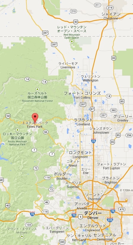 ロッキーマウンテン国立公園は、デンバーからシャイアンに行く途中、ちょっと迂回すればいけそうなそんな感じの場所です。そして、国立公園のゲートウエイとなる町は「エステスパーク」らしいと分かりました。デンバー空港からは車で2時間。グーグルで調べてみるとシャイアンまでも2時間らしい。宿泊施設もいろいろあり、観光地らしく土産物屋さんとかレストランもたくさんあるそうです。一説によると軽井沢みたいという話も。