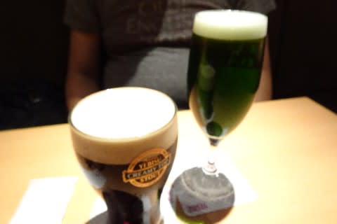 連休の上野は人がいっぱい。まだ早い時間だからビール屋さんへ入ったら座れた。