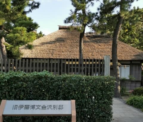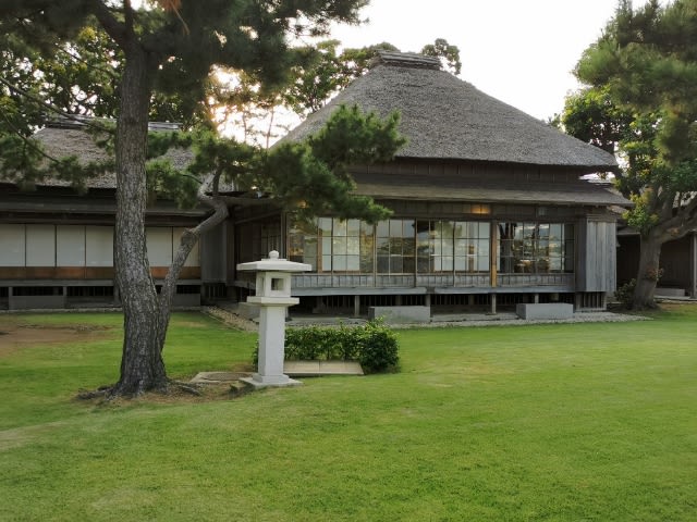 伊藤博文別邸は茅葺き屋根の立派な建物です。復元されたものだそうですが、当時の建材などを利用したようです。