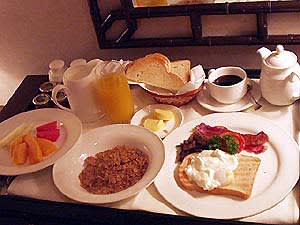 ルームサービスでフルイングリッシュの朝食を頼む。