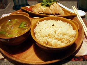オーチャードマンダリンホテルのレストラン「チャターボックス」の海南チキンライス。おいし~。