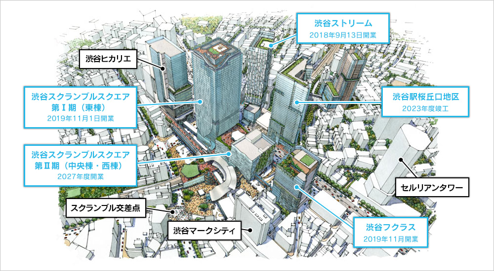 こうしてみると、地方出身者の私でもマークシティーやセルリアンタワーの開業の記憶があるから、初めて来たころの渋谷って全然今と違ってたんだなぁ。