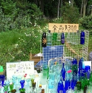 アートマーケットで空き瓶をリサイクルして作品を作ってるブースに立ち止まる。