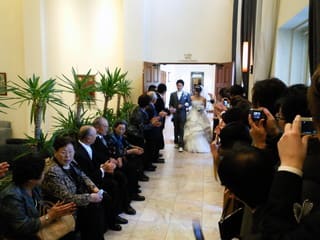 歩いて結婚式会場へ。挙式&披露宴。