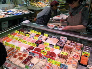 車を返し、駅前の和商市場で「勝手丼」とお土産の海産物購入。