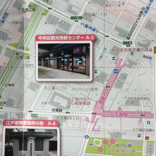 昨日もらった地図によると今の日比谷線八丁堀駅の南西側にあるようですが、