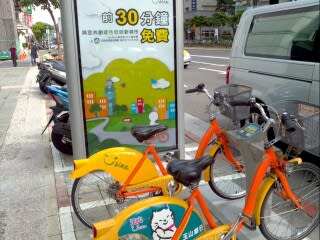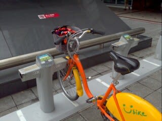 台湾は以前はバイクが主役という感じでしたが、最近は行政でも自転車に力を入れていて、道路の整備も進められ、市民も自転車ブームが起きています。このレンタル自転車も観光客より市民の足になっているんですよ。