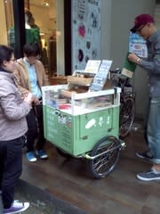 すごい行列が出来てたのでなんだろうと近づいたら、ケーキの移動販売でした。目の前で売り切れて、並んでいた人たちが散らばっていきました。
