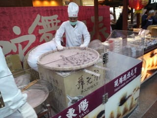 三越デパートの前で「湯圓」の実演販売してました。