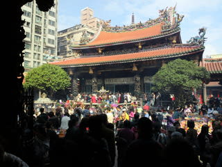 台北市内のお寺というと「龍山寺」か「行天宮」が有名で、どちらも交通の便のよいところにあります。今回は周辺に下町情緒が感じられる「龍山寺」に行くことにしました。