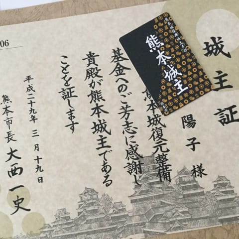 「城主証」という文字の上にある「C」みたいなマークは熊本市章、