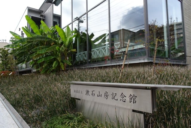 庭に植わっている芭蕉も再現されている。書斎はまあほとんどがレプリカなのだけれどなかなかの出来栄えで、私たち見学者は当時の雰囲気を味わうことができる。二階の展示室は漱石文学の全体像が掴めるようにに工夫されている。マニアな展示もあるが、初心者も楽しめる。