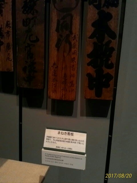 大山詣りは宗教色のあるもので、江戸の庶民たちは「講」をつくってグループで参詣していた。そして定期的にお詣りを繰り返していく。もちろん、落語に出てくるようにレジャーという意味合いも強い。そうするうち泊まる宿屋の方にも「おなじみ」ができて、どこそこの講の人たちはどの宿屋に泊るというのが決まってきて、それで泊まるときにこの板を掲げておいたもののよう。