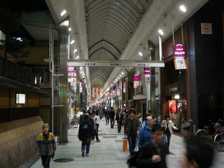 木屋町。高瀬川の川面に映るカフェの明かり。