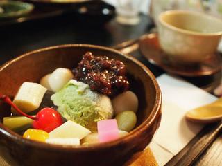 昨夜も朝もたくさん食べたので、私は軽くあんみつにしました。