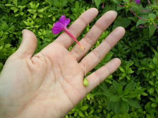 そうですか~遊んだことなかったですか~。おしろいばなは毎日毎日たくさん咲くので、こういう遊びもできますね。でも人様がそっだててるものをちぎっては申し訳ないから、最近はなかなかできなくなりました。