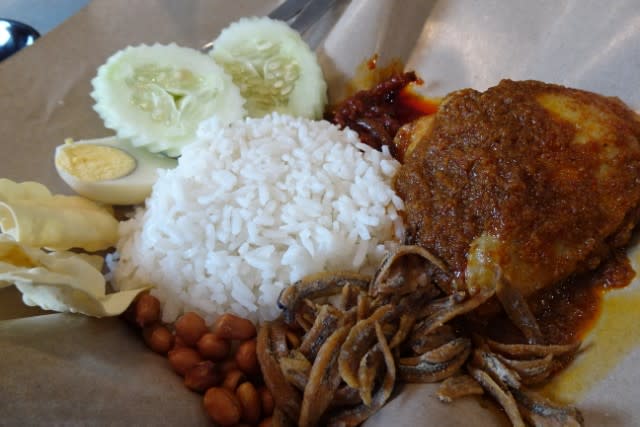 昨日のGRABの運転手さんにすすめられたナシレマを朝ごはんに食べましょう。KLセントラル駅周辺には朝から開いてる食堂がいろいろあります。