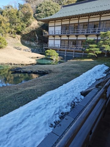 タモリさんも訪れていた建長寺の禅の庭。まだまだ雪が残っていました。