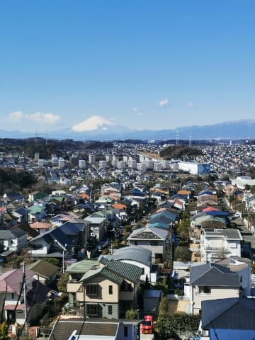 横浜市栄区の住宅地の向こうに 富士山がくっきり。