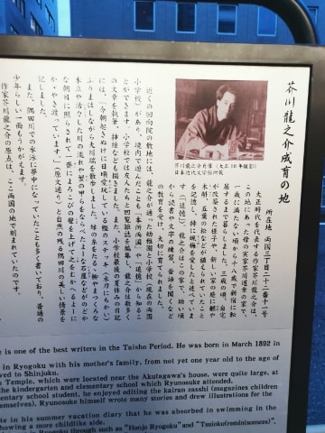両国駅近くには「芥川龍之介成育の地」がありました。