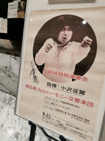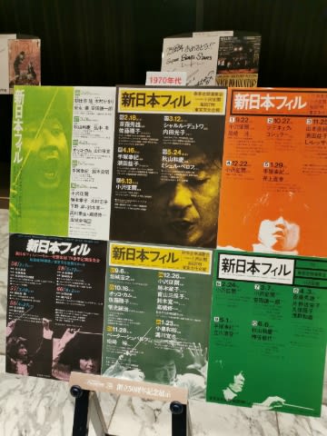 ロビーには「新日本フィル50年の軌跡展」というような写真パネルが。