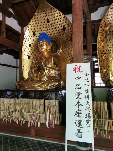 こちらは修復を終えて戻ってきた阿弥陀様。ピカピカしています。