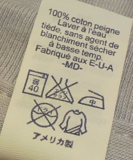 アメリカの日系の工場で製造されて、ほとんどが輸出用だとか?洗濯表示の上の言葉は英語でもないですね。このツアーTシャツが日本に輸出されてる・・・・なんてことはなさそうだし。もとのTシャツが輸出用でそれをこのツアーの業者さんが使ってプリントしただけなんでしょうね。