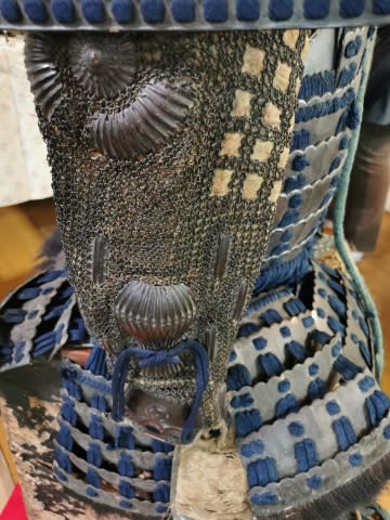これは鎧櫃に入って放置されてたそうで、友人はネットで鎧たてを探して買ってました。ご先祖は佐々木盛綱の子孫らしい。