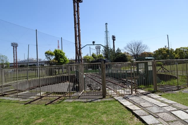 本牧市民公園には運動施設や陶芸センター、トンボの棲む池などいろいろなものがありますが、蒸気機関車とターンテーブルもありました。高島車庫から移築されたものだそうです。