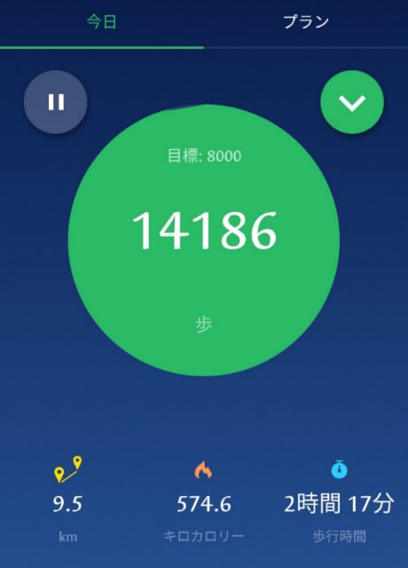 家に帰って歩数計を見たら14000歩歩いていました。