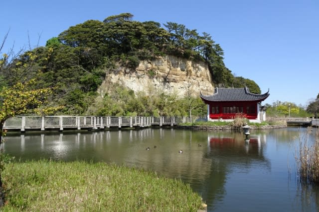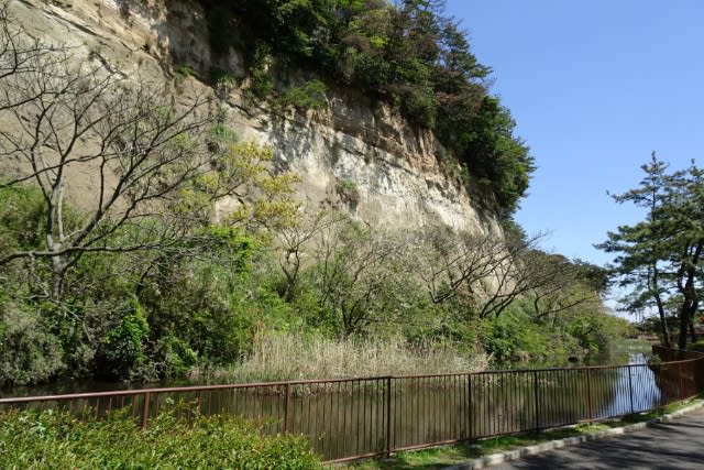 今は海岸線はずっと向こうになってしまいましたが、この崖下に池が作られ(遺され?)往時の景色をイメージすることができます。