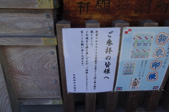 神社もコロナ対策がなされていました。