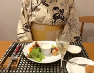 盆踊りの前に、せっかく浴衣着たので近所のレストランでご飯いただきました。ちょっと気分が変わっていいですね~。